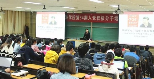 1018日下午,“学习十九大精神”专题党课在公共教学楼一楼1204教室举行,学院党委书记关雪凌为党校学员讲授主题为“满怀信心,迎接十九大胜利召开;立德树人,始终奋进在时代前列”的党课,党课由学院党委副书记徐景阳主持。关雪凌书记结合自身参加学校党委理论学习中心组(扩大)会议的学习体会与学员分享心得,带领学员学习十九大报告精神。她指出,党的十九大报告内容丰富,内涵深刻,全体学员应认真学习领会。她强调,报告指出了新时期中国社会主要矛盾的变化,作为经院学子应与时俱进,将专业学习与政治学习相结合,认真学习领会党的十九大精神,提高自身政治素养。