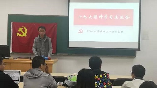 1129日,国际经济系教工党支部在党员之家开展以“学习贯彻落实十九大精神”为主题的专题组织生活会,进一步推动教师党员学习十九大精神。