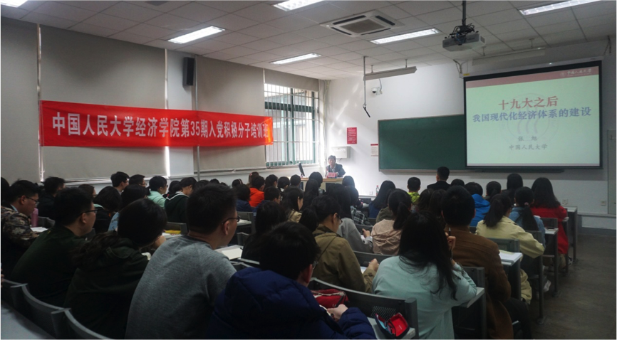 3月29日,马克思主义学院副院长张旭教授以“十九大之后我国现代化经济体系的建设”为主题进行授课。张旭教授向学员介绍我国经济发展战略的转型历程,并就党的十九大对我国经济发展做出的重大判断、我国该如何建设现代化经济体系等问题阐述了自己的看法。张旭教授的精彩授课使本期培训班学员对当下中国经济形势有了更加深刻的认识,有助于引导学员结合自身专业知识对中国经济发展领域进行深入思考,有利于增强入党积极分子的责任感、使命感,提高入党积极分子理论水平和党性修养,助力党的十九大精神贯彻落实。