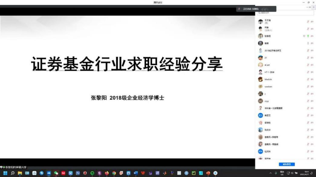 4月17日,政治经济学博士第一党支部,企业经济学、网络经济学博士党支部与世界经济学博士党支部采取线上方式联合开展了以“求职就业经验分享”为主题的党日活动,活动涵盖高校和社科院面试,基金、部委研究部门与地方选调生求职面试等方面的经验分享。