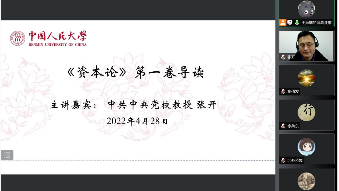 4月23日,政治经济学博士第二党支部采取线上方式开展了以“毕业生求职就业经验分享”为主题的党日活动,聚焦银行求职与高校应聘心得分享。28日,政治经济学博士第二党支部于明德主楼728会议室开展了以“资本论第一卷导读”为主题的党日活动,中央党校经济学部教授、中国《资本论》研究会理事张开出席。