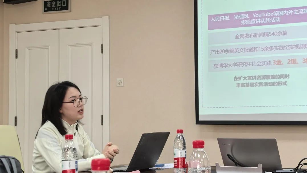 清华大学社会科学学院社科博41党支部宣传委员范佳颖以“推动青年宣讲‘有高度’‘接地气’”为主题,介绍了清华大学社会科学学院三位一体推进学生党建工作的经验。