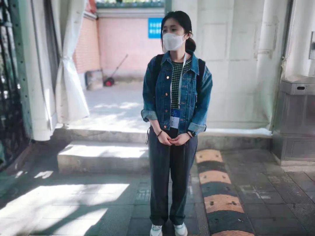 5月12日,行政教工党支部党员蒋莉薇在核酸检测党员志愿服务岗位上