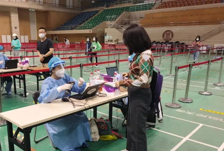 此前,学院党委副书记、学校首批校级“双创”样板支部“行政教工党支部书记李佩洁,支部成员蒋莉薇、黄庆响应学校号召,积极参与学校核酸检测志愿服务工作。