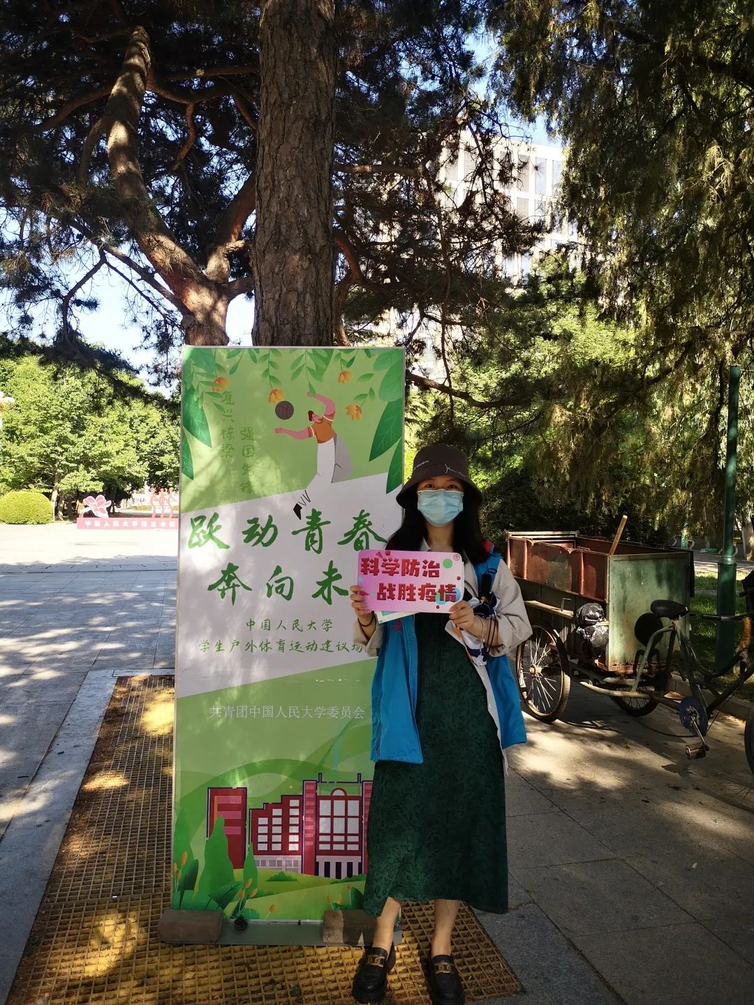 “时代各有不同,青春一脉相承”,奋战在“抗疫”一线本身就是新时代中国青年的重要责任。作为一名入党积极分子,5月20日我报名参加2022疫情防控青年志愿者先锋队,担任身披“蓝马甲”的校园流动巡值志愿者。我们的职责主要是按既定路线在校园各处巡逻,并提醒同学们佩戴口罩、减少扎堆聚集,同时也为出门忘记戴口罩的同学发放口罩。在志愿服务工作中我感到了一种无形的责任感,希望用一点一滴的实际行动书写使命担当,描绘“人大红”与“志愿蓝”的青春色彩。