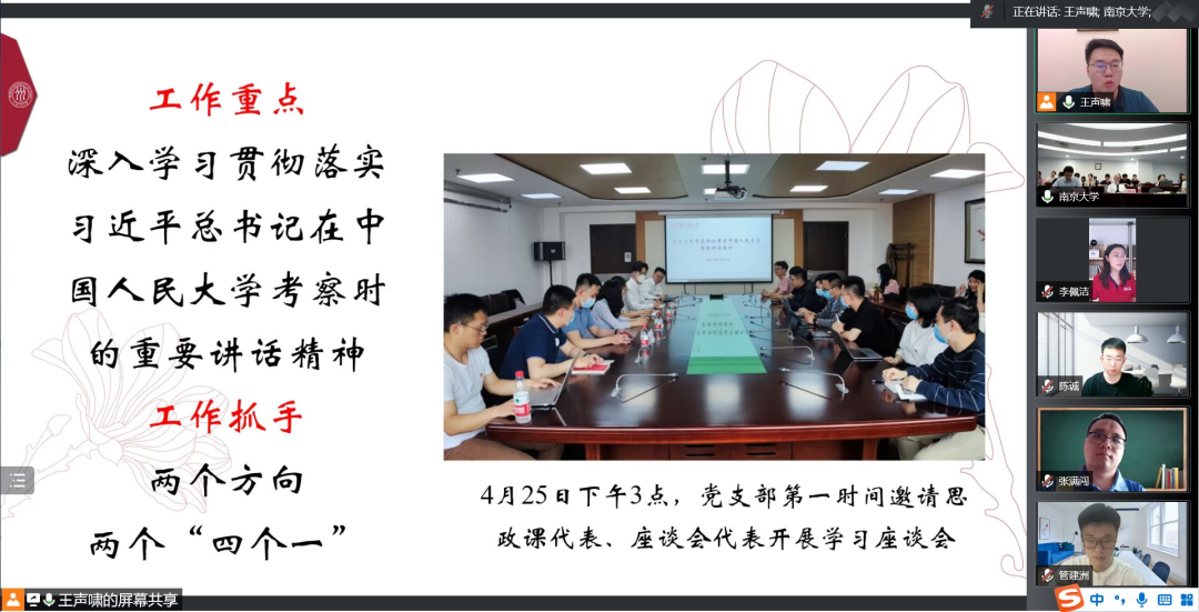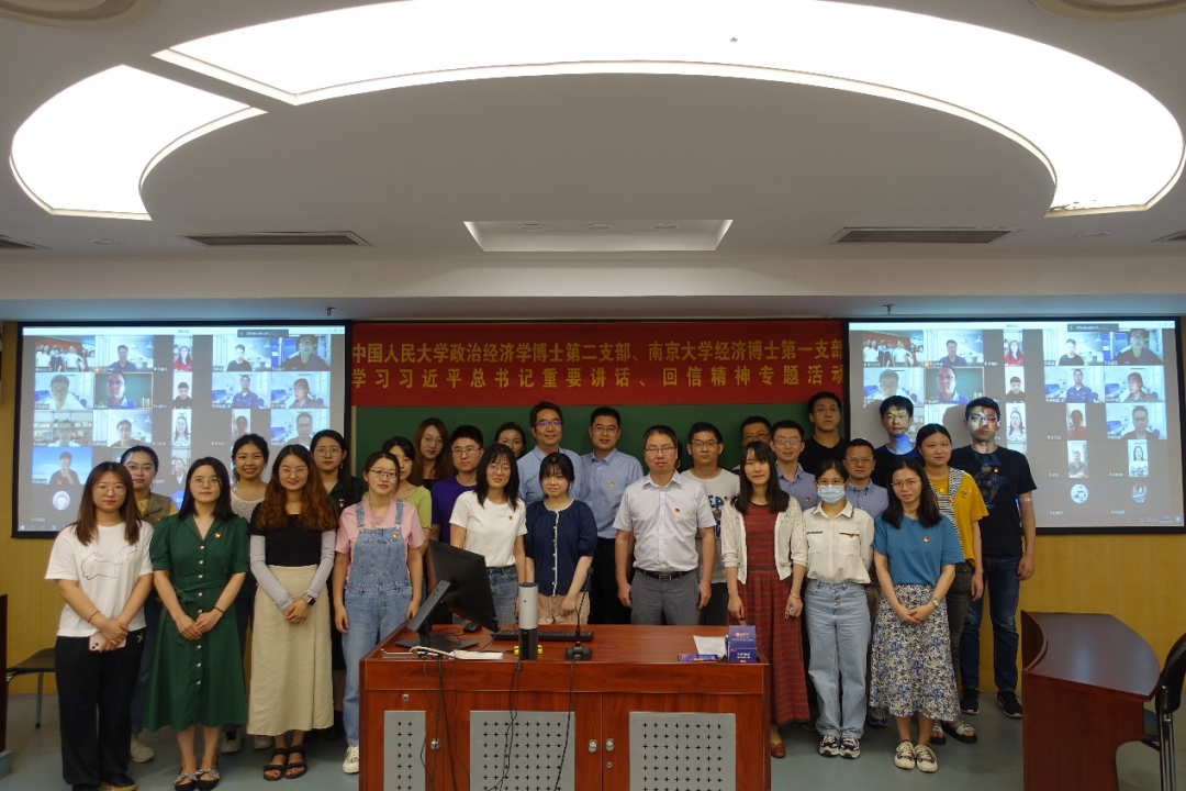 为深入学习习近平总书记考察威尼斯9499登录时的重要讲话精神和给南京大学留学归国青年学者的回信精神,6月10日下午,威尼斯9499登录政治经济学博士第二党支部与南京大学商学院经济博士第一党支部在线上联合开展学习习近平总书记的重要讲话、回信精神专题活动。