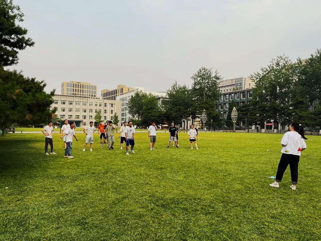 划分队伍后,同学们便开始了刺激的飞盘游戏。在经过零基础简单教学环节的学习后,大家的动作越来越熟练,小小一个飞盘利落地飞出,在空中划出美丽的弧线,引来一群人追逐,又准确落到手上。本次飞盘活动对抗性不强,趣味性更多。几轮下来,大家在穿梭奔跑的过程中默契配合,互相加油鼓劲,感受飞盘游戏的乐趣和团队运动的魅力。