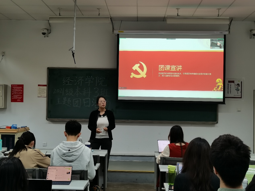 在迈向现代化新征程的重要关头,我们新时代团员青年生逢其时,施展才干的舞台无比广阔,实现梦想的前景无比光明。从个人角度而言,作为毕业生的我们,要找准自己的赛道,将个人的前途和国家命运紧密结合,让青春在全面建设社会主义现代化国家的火热实践中绽放绚丽之花。从集体角度而言,“团结奋斗”这一贯穿党的二十大报告的主题词,指示我们在面对新时代新征程上的惊涛骇浪时,要团结成“一块坚硬的钢铁”,站在潮头,迎着风浪、迎着机遇前进;要厚植经院的红色基因,继承创新品格,以更加强烈的历史主动精神,承担起寻找中国经济学、构建新时代中国特色社会主义政治经济学的历史使命,奋力实现中华民族伟大复兴的中国梦。新征程是充满光荣和梦想的远征。作为经数实验班的学生,我们要牢记习近平总书记的叮嘱,在扎实的经济学基础训练的基础上,用好数学建模工具,积极参与社会实践,用脚步丈量祖国大地,用眼睛发现中国精神,用耳朵倾听人民呼声,用内心感应时代脉搏,踔厉奋发、勇毅前行,努力创造更加灿烂的明天。