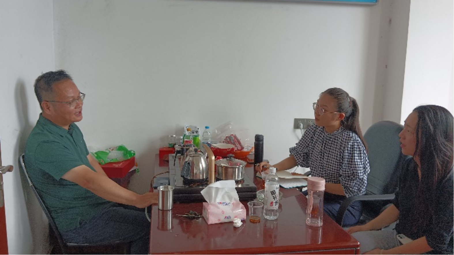 丁彦之(右二)与前垅村驻村第一书记访谈