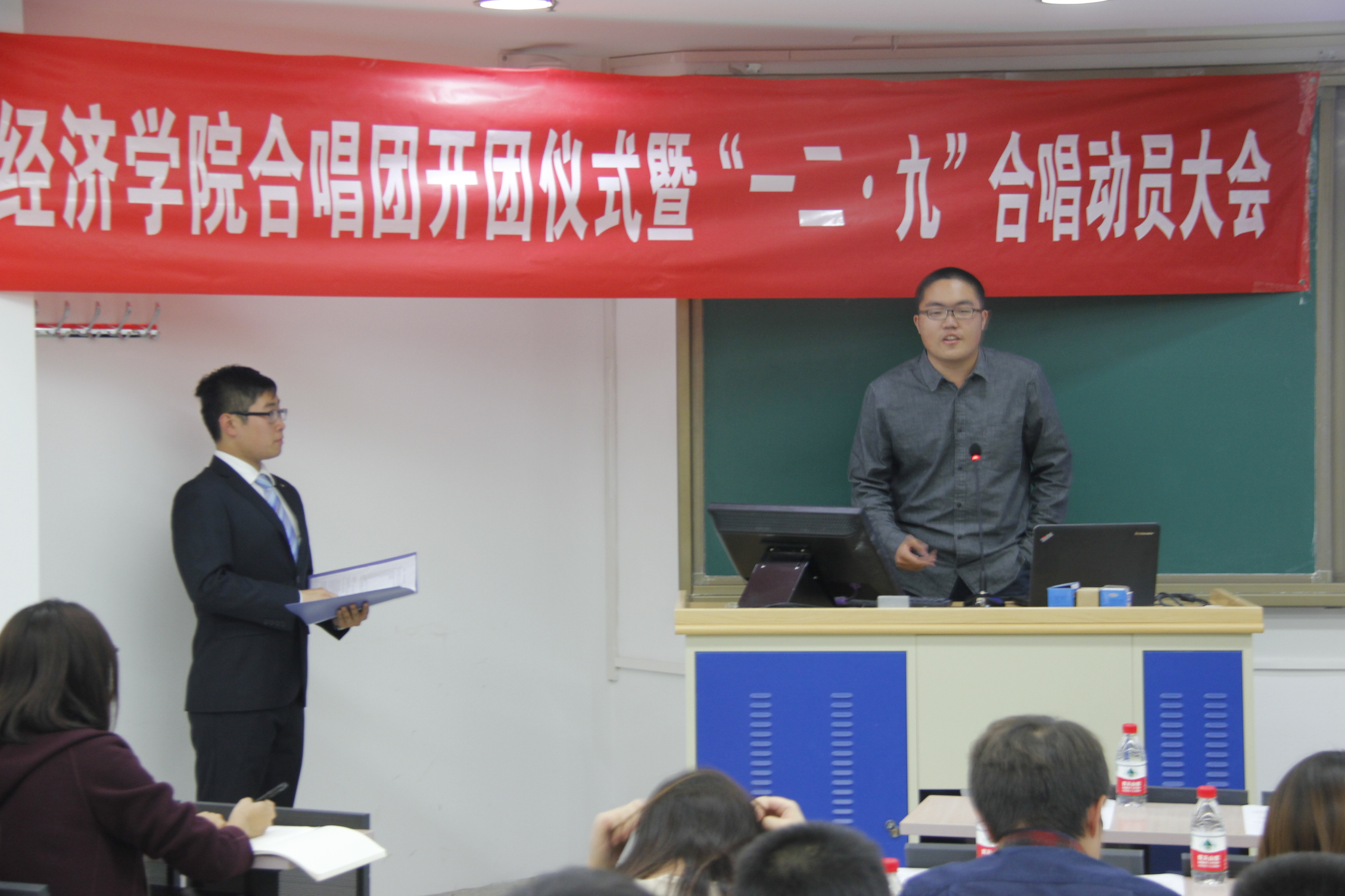刘瀚元发言完毕后,威尼斯9499登录团委副书记王睿同学宣读了合唱团章程。章程要求合唱团本着丰富师生文化生活,发展经院文艺事业的宗旨,踏踏实实工作,认认真真排演,实实在在地把经院合唱团打造成高水平的学生文艺团体。
