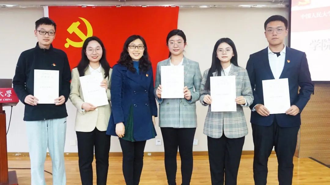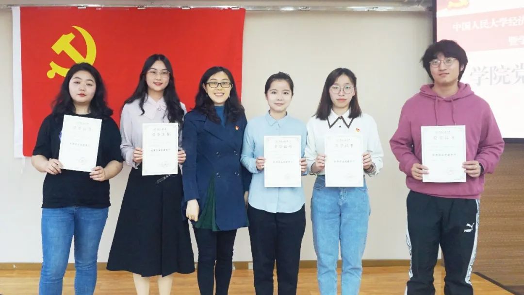李佩洁为获奖的优秀学生党建骨干颁奖并合影留念。
