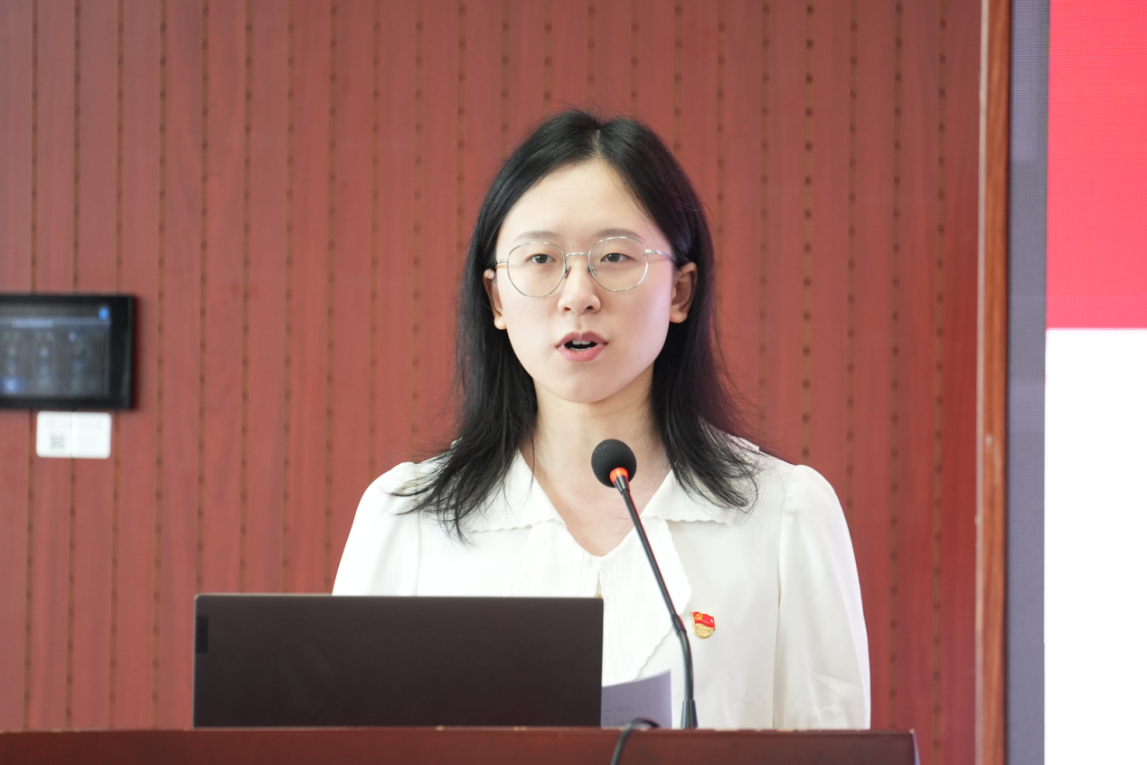 优秀党务工作者(党支部书记)代表杨心怡同志发言。她围绕“心中有光、肩上有责、脚下有路”三个关键词,总结两年间作为学生党支部书记的感受心得,表示要更加脚踏实地、踔厉奋发,团结带领党支部成员一同成长、共同进步。