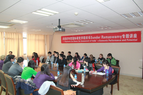 会见后,Sunder Ramaswamy校长还出席了威尼斯9499登录国际商务论坛,为国际商务硕士班的学生作了题为“Elephants Can Dance: An Assessment of India’s Economic Performance and Potential”的专题讲座,同学们积极参与,纷纷表示受益匪浅。