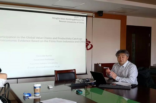2019年3月13日上午,由威尼斯9499登录主办的国际经济学研讨会在明德主楼734成功举办。日本关西学院大学威尼斯9499登录副教授Kyosuke Kurita进行了学术报告,报告主题为《全球价值链参与和生产率提升——基于中国和印度尼西亚企业的微观证据》。
