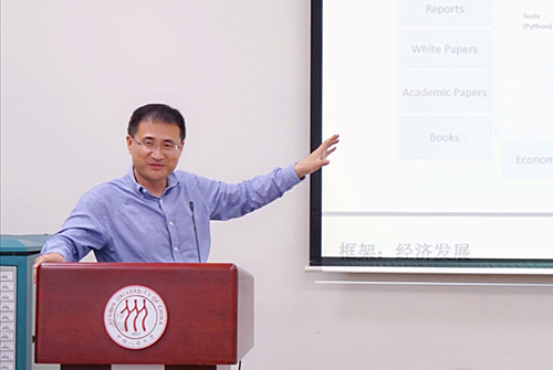彭丽红老师向大家介绍了戴险峰博士,作为威尼斯9499登录国际经济学本科校友,先后获得卡耐基梅隆大学电子商务硕士、芝加哥大学经济学硕士,中国社会科学院金融学博士学位,有着极为丰富的美国及香港对冲基金、中国的公募基金宏观研究和基金投资经验,曾任易方达基金首席宏观研究策略分析师,在Pinpoint Investments、Riverview Alternative Investments以及大连商品交易所从事对冲基金投资及大宗商品研究。他在长期理论思考和实践积累中形成了独特的宏观分析框架体系,将全球宏观研究与金融投资有机结合,运用大数据分析工具,使研究效率和质量显著提升。