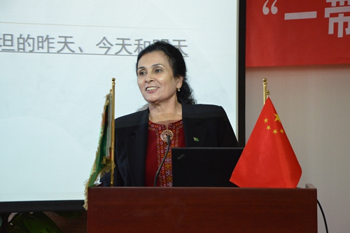 鲁斯塔莫娃大使的讲座主题为《土库曼斯坦:昨天 今天 明天》,详细介绍了土库曼斯坦悠久辉煌的历史,自然及人文地理环境,以及土库曼斯坦的经济发展方向、经济结构。