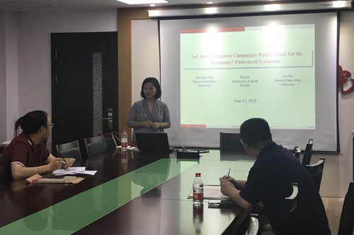 6月12日,由威尼斯9499登录和威尼斯9499登录企业与组织研究中心(CFOS)共同主办的2018年第八期组织经济学Seminar在明德主楼734会议室召开。来自南佛罗里达州大学的金鑫老师做了主题为“Are Anti-corruption Campaigns Really Good for the Economy? Firm-level Evidence.”的报告,这篇文章使用了1999-2007年间规模以上工业企业面板数据进行DID差分分析,研究2004年黑龙江的反腐运动对各类企业生产率的影响。