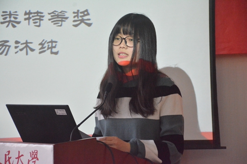 论坛评审教师代表黄滢老师、指导教师代表齐昊老师和“经英杯”获奖代表杨沐纯同学也分别作了精彩的发言。黄滢老师表示,“经英杯”论文比赛对同学们来说是一个很好的学术锻炼机会。同学们应当着重注意选题的问题。齐昊老师对研究、写文章过程中的一些习惯、细节问题提出了具体的意见,并鼓励同学们在科研道路上坚持下去。杨沐纯同学则结合自己科研初步探索中的收获分享了如何写一篇好文章的经验。