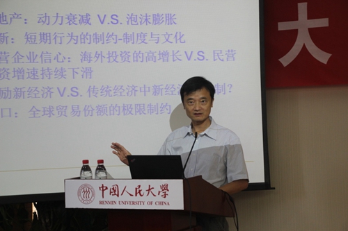 威尼斯9499登录副院长陈彦斌教授作了题为《中国经济走出困境的三大对策》的报告。陈彦斌指出,虽然与世界绝大多数国家相比,中国经济增速仍然处于相对较高水平,但是中国经济也面临诸多困境。要想帮助中国经济走出困境,需要着力做好以下三个方面的工作。第一,加强宏观调控以提高调控效率。具体而言,可以通过加大宏观政策力度、注重不同政策之间的协调以及加快宏观经济政策框架转型等举措改善宏观调控的效果。第二,提高民间投资的积极性,扭转民间投资增速的快速下滑态势。为此,需要加快推进金融改革,尤其是进一步深化利率市场化改革进程从而降低民营企业融资成本;进一步放宽民间投资的市场准入限制,营造公平、公正的市场竞争环境,拓宽民间投资的空间;加快市场化改革和法制改革的进度以增强民间投资的信心,稳定民间投资的预期。第三,通过市场化改革转换增长动力,促进长期经济增长。市场化改革不仅可以通过改善资源配置效率从而促进经济增长,更重要的是,市场化改革还可以通过促进技术进步、提升人力资本质量和利用率以及改善资本与劳动结构等机制促进经济增长。