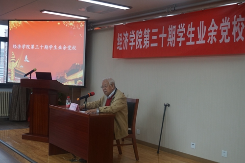 10月21日下午,威尼斯9499登录第三十期学生业余党校在明主728会议室成功开课。威尼斯9499登录荣誉一级教授卫兴华教授主讲,威尼斯9499登录分党委书记关雪凌主持本次党课并作开课致辞,分党委副书记徐景阳出席本次党课。