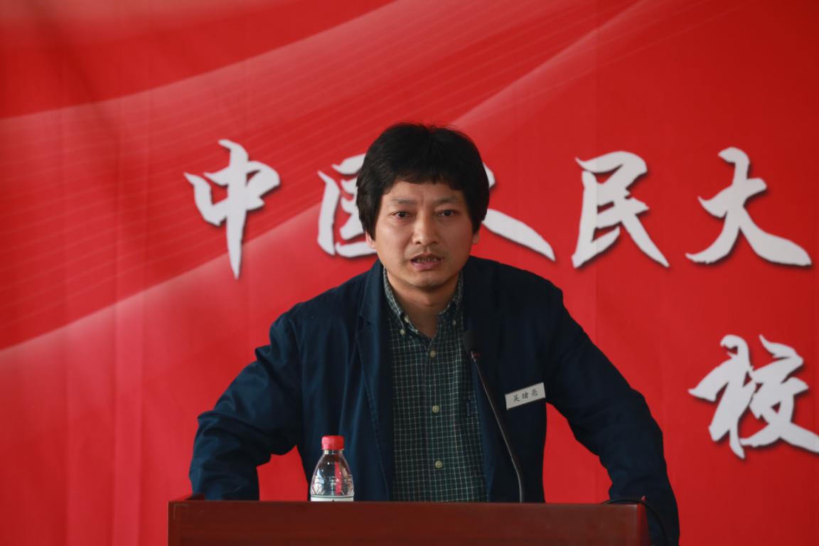 北京鼎诺投资管理公司总经理许余洁先生发言,他表示:在人大的学习生涯里,非常感谢杨老师、魏老师对自己的帮助和支持。他认为同学们需要找准自己的坐标,避免迷失在无谓的努力中;正确的训练是非常有必要的,同学们通过练习与努力可以达到原本难以企及的高度;走向社会迈入职场后,同学们要以学习的心态多向师兄师姐们请教和取经,师兄师姐们也会以传承的心态为同学们提供更多的帮助和支持。