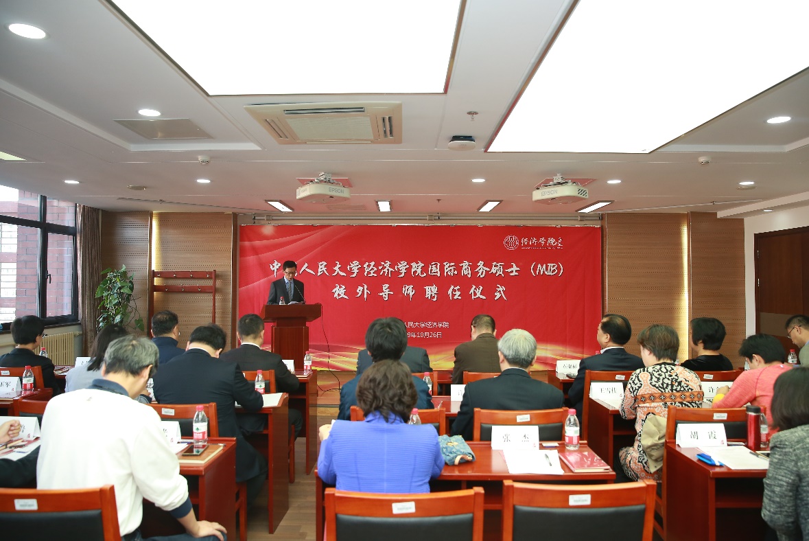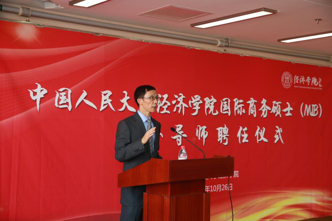 2019年10月26日,威尼斯9499登录国际商务硕士(MIB)校外导师聘任仪式在明德主楼728报告厅举行。威尼斯9499登录党委书记兼院长刘守英教授出席仪式并致辞,天弘基金智能投资部高级投资经理戴险峰先生,《财经》杂志主编、《哈佛商业评论》中文版主编何刚先生,好想你健康食品股份有限公司董事长兼总经理石聚彬先生,泛海控股股份有限公司副董事长、总裁宋宏谋先生,正大集团农牧食品企业(中国区)人力资源总裁陶启文先生,OBOR Sinobridge董事长王芊霖女士,中国贸促会企业权益保护中心副主任王雪佳女士,腾讯研究院首席经济学顾问吴绪亮先生,国家电力投资集团中央研究院、国家电力投资集团北京电力公司首席顾问许小春先生,北京鼎诺投资管理公司总经理许余洁先生,安徽省信用担保集团有限公司党委书记、董事长严琛先生及夫人,浙商银行总行党委委员、副行长兼北京分行党委书记、行长张荣森先生等十二位校外导师代表出席仪式。威尼斯9499登录国际商务项目主任程大为教授,国际商务项目“互联网+”方向负责人程华副教授,以及国际商务硕士校内导师韩玉军教授、杨其静教授、胡霞教授、彭丽红教授、胡曙光副教授、姜少敏副教授、刘小鲁副教授、石慧敏副教授及国际商务19级全体新生出席了仪式。聘任仪式由威尼斯9499登录党委常务副书记兼副院长王晋斌教授主持。