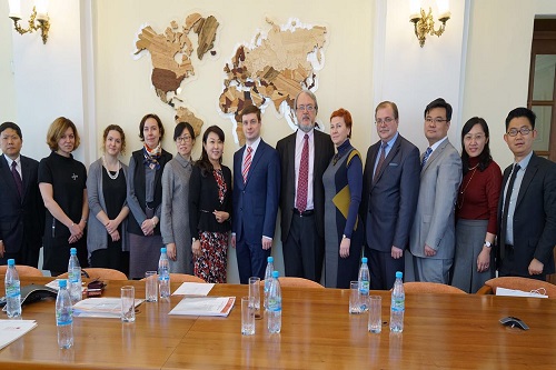 会谈中,马胜利主任、沃晓静副处长、滕文芳主任分别为俄方介绍了人民大学的专业学位项目、科研项目、人才项目等。双方一致认为,在人才培养方面,应加强复合型人才培养,联合开展专业学位和双学位硕士项目,互派教师授课,开展各个层次的学生交流交换等;联合研究方面,应加强学者间的交流和合作,互邀学者参加学术会议,联合发表论文,共同撰写两国的经济与政治发展研究报告,加强数据库对接等。