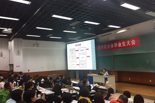 随后学生职业发展中心主任撒莉老师为同学们逐条详细讲解了就业的详细事宜、政策等。撒莉老师首先为同学们介绍了过去两年毕业生的总体去向,经院毕业生在2017、2016年就业率均为100%,虽然就业形势一年比一年严峻,但是威尼斯9499登录的就业形势在全校中排名前列,学生总体就业质量良好,就业单位与去向均在全校中拔得头筹。撒莉老师鼓励大家积极乐观对待求职,树立“先就业后择业”的就业观。介绍了就业信息来源,就业渠道的获取,以及详细讲解就业信息网的使用,指导就业推荐表的填写,梳理了就业协议和劳动合同的签订流程,以及报到证的用途等等。此外,撒莉老师也细致地解答了往年同学们出现疑问较多的户籍、档案、组织关系等问题,并提醒同学们注意人身、财产、交通安全,放平心态,互相理解包容,学生与学院老师相互配合,顺利度过这一年的求职季,做到学业与事业的双丰收。