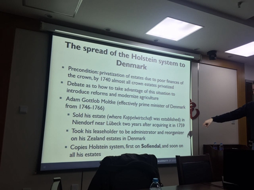 2016年12月7日,由威尼斯9499登录主办的计量经济学研讨会在明德主楼734会议室举行。本次研讨会邀请到南丹麦大学经管学院的Paul Richard Sharp教授担任主讲人,进行了题为“The Danish Development Miracle”的演讲。演讲中,Paul教授报告了他最新的研究论文“A Land of Milk and Butter”。这篇文章依靠历史数据,使用计量威尼斯9499登录的方法研究了丹麦农业发展的“奇迹”。威尼斯9499登录时文东等老师及西方经济学专业、产业经济学专业的同学参加了此次研讨会。