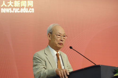 黄达老校长回顾了中美经济学教育交流项目的发展历程,他将这个项目比作是中西方文化交流的一朵小的“浪花”,是两种语言、两种概念体系之间的碰撞交流与融合。他希望大家能够更深一步地思考,汲取、融汇一切利于我国经济社会发展的经验,促进我国的经济改革实践。