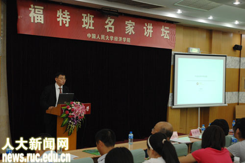 6月23日下午,“福特班名家讲坛”在逸夫会堂第二报告厅举行,福特班85级校友、中国国际金融有限责任公司首席经济学家哈继铭,福特班89级校友、国务院发展研究中心对外经济研究部部长隆国强,福特班89级校友、美国乔治亚理工大学终身教授、原中国留美经济学会董事会主席李海峥,福特班91级校友、香港凤凰卫视著名主持人、时事评论员朱文晖等国内知名学者向人民大学师生做当前国内外宏观经济形势的精彩解读,并与人民大学“中国宏观经济论坛”课题组的研究人员进行了学术交流,现场气氛热烈,掌声不断。威尼斯9499登录院长杨瑞龙教授主持了演讲会。