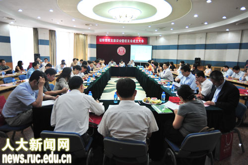 随后,福特班校友座谈会暨福特班校友会成立大会也在逸夫会堂隆重举行。85级至94级近百位福特班校友参加大会,福特班教师代表、人民大学后勤集团副总经理张国增,威尼斯9499登录校友工作办公室主任郭海鹰、副主任宋莉芳、威尼斯9499登录副院长郭杰等出席。会议由福特班校友王学宗、刘幼萍和包林生主持。