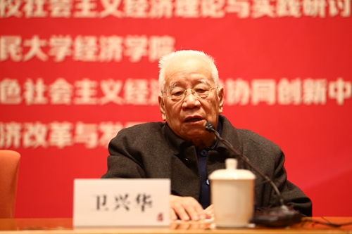 卫兴华教授围绕十九大报告中有关社会主义经济发展的内容进行发言,他指出,从十九大报告中可以看出社会主义经济理论与实践的四大转变。一为社会主要矛盾的变化;二为完善按要素进行分配的社会分配机制;三为注意区分“生产”与“分配”的概念,“生产”概念用效率衡量,“分配”概念用公平衡量。发展经济既要重视生产效率,也要重视分配公平。四为注重实体经济发展。