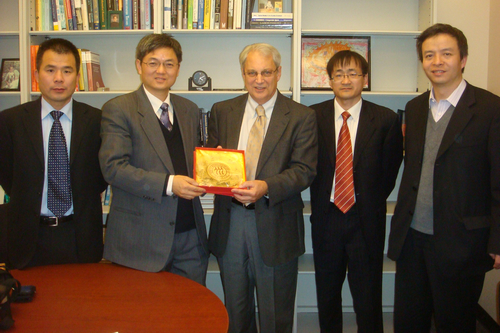 在亚利桑那州立大学,代表团成员会见了2004年诺贝尔经济学奖得主Edward Prescott教授。杨瑞龙院长先向Prescott教授详细介绍了人民大学的学科情况以及在中国的地位,并重点介绍了《中国宏观经济论坛》,赠送了《中国宏观经济2009-2010》(英文版)。杨瑞龙院长还邀请Prescott教授访问威尼斯9499登录。Prescott教授愉快地接受了访问人民大学的邀请,并就中国经济改革、中国在世界中的地位与代表团成员进行了深入交流。