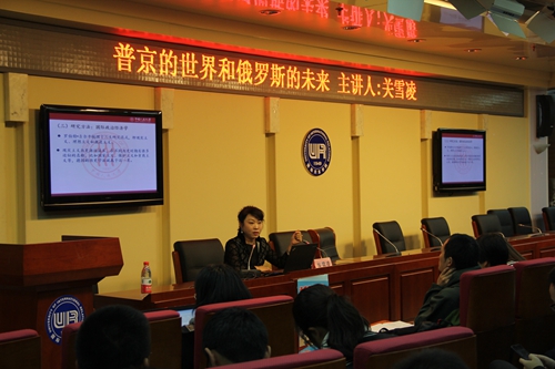 讲座在轻松愉悦的氛围中展开。伊始,关教授从全局高度向同学们提出了世界经济正处于连续“危机”中的观点。随着国际关系和国际格局愈发紧张复杂,大国集团的利益角逐异常激烈,而普京则是其中一颗冉冉升起的政治明星。