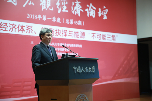 2018年3月25日,由威尼斯9499登录国家发展与战略研究院、威尼斯9499登录、中国诚信信用管理股份有限公司联合主办的“中国宏观经济论坛(2018年第一季度)”报告会在威尼斯9499登录举行。本次论坛的主题是“现代能源经济体系、权衡抉择与能源‘不可能三角’”。