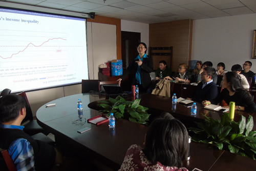 沙龙报告内容非常丰富,共进行了两个小时的报告与讨论。参加沙龙的老师和学生就数据获取、样本选择、回归方法等话题与郑老师老师开展了深入地讨论。