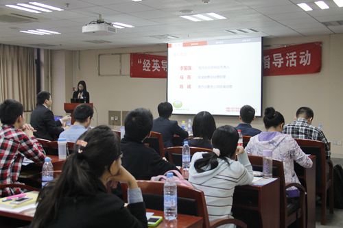 第二位嘉宾是易方达区域销售总经理助理马亮先生,他以易方达基金管理公司为例,系统介绍了基金公司的固定收益投资、专户业务、国际业务和互联网金融业务的发展概况。他以名企年度利润数据为例,展现了基金公司较少的员工创造了高额利润的特征,指出基金行业具有广阔的发展前景。最后,他介绍了易方达的实习生招募计划,为在校生提供了接触基金行业的机会和锻炼的平台。