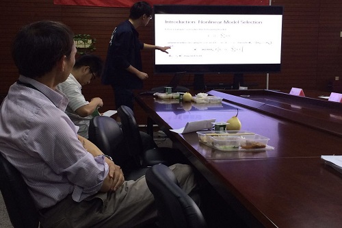 姚青松同学主要介绍了非线性回归模型的模型选择和模型平均问题。对于可能含有非线性参数和变量的回归模型的模型选择和模型平均问题,可以构建一种新的信息准则——NIC准则,并能够证明它在非线性情形下是风险函数的渐近无偏估计量。除此之外,文章还介绍了一种非线性模型平均的方法,将NIC准则扩展到带有权重系数的NICMA准则。在将模型形式的复杂性考虑到罚项之后,两种准则都有非常好的表现。这些内容对于非线性回归模型的实际应用具有很大的用处,引发了同学们的热烈讨论。