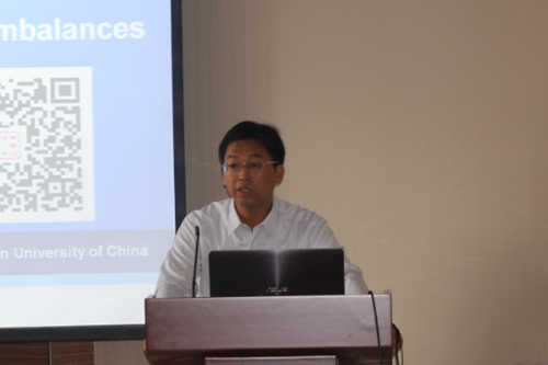 刘凯助理教授报告的题目是《美元与全球经济失衡》。刘凯指出,全球失衡的主要特征是美国巨大的、长期持续的贸易赤字。事实上,自从布雷顿森林体系崩溃并被牙买加协定所取代,美国贸易赤字已经持续了40年。刘凯通过构建一个以美元作为国际贸易支付标准的具备“货币先行”特征的两国开放经济模型,证明了基于美元的特殊地位,长期的全球失衡是可持续的。刘凯强调,长期的美元赤字是一些变量的增函数,这些变量包括:对离岸美元的需求,全球名义GDP的长期增长率,国际贸易的开放度,国内和外国商品之间的替代弹性以及美国经济和世界上其他国家之间的相对规模。刘凯认为,在现实世界中,美元的货币长期非中性是存在的,结构性的全球失衡与不平等的国际贸易有利于美国却不利于整体世界。最后,刘凯指出,根据福利分析,国际贸易中美元地位的削弱会使美国福利受损,但却会使世界的整体福利增加。刘凯还探讨了与此文密切相关的人民币国际化问题。
