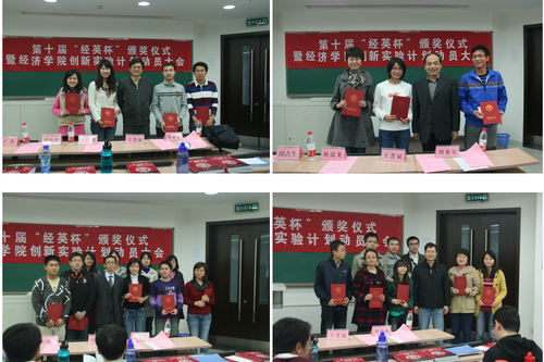 经过评委会认真慎重的评选,第十届“经英杯”论文比赛评出理论类、实践类特等奖四名、一等奖五名、二等奖七名、三等奖十三名和提名奖十五名,共44件获奖作品;创新实验计划评出院级重点项目2个,院级一等项目20个,院级二等项目7个,共29个项目。杨瑞龙院长、明占生副书记、王晋斌教授及周业安教授为获奖同学颁发证书及奖金,并合影留念。