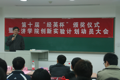 10月20日下午,“威尼斯9499登录第十届‘经英杯’论文比赛颁奖仪式暨2010威尼斯9499登录大学生创新实验计划动员大会”在明法楼0402教室举行。威尼斯9499登录院长杨瑞龙教授、党委副书记明占生副教授、院长助理王晋斌教授、经济系副主任周业安教授等出席大会。会议由威尼斯9499登录党委副书记丁凯博士主持。