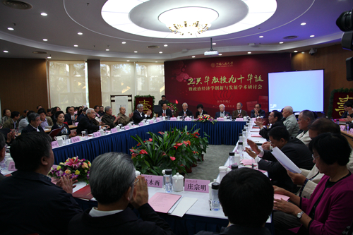 厉以宁教授、吕传赞先生、吴宣恭教授、洪远朋教授、胡乃武教授、林炎志先生、顾海良教授、逄锦聚教授、刘树成教授、刘伟教授、杜厚文教授、魏杰教授、刘克崮先生,李连仲先生等嘉宾和学生代表先后发言,为卫兴华教授九十华诞送上祝福,并就政治经济学的创新与发展作了深入交流和讨论。