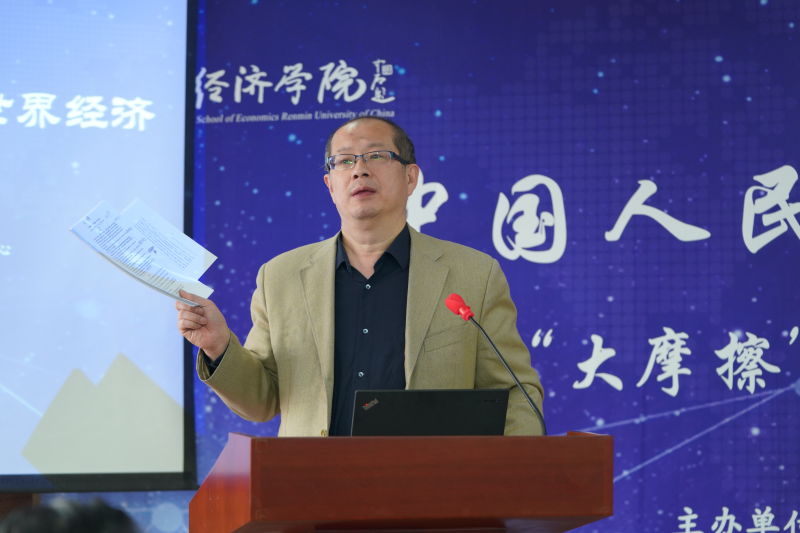 王晋斌教授代表课题组首先进行了报告发布,简明扼要地梳理了“大摩擦”与“大调整”背景下经济全球化的重塑与“大平庸”周期的延展。他指出,大摩擦是逆全球化,大调整意味着经济全球化的重塑,而美国经济的强劲增长是未来世界经济面临的最大不确定性和风险,为了延长此轮美国经济景气周期的长度,延缓美联储加息是特朗普政府宏观政策的要点。在此趋势下,走经济的内外平衡发展道路是世界经济的大势所趋,但美国发起的贸易摩擦会导致全球贸易投资限制规则的提高,限制和阻碍了技术贸易和技术扩,经济全球化的重塑在某种程度上意味着技术贸易的稀缺性增加。此外,特朗普采取“先破后立”策略来重塑经济的全球化,必将对世界贸易和投资者产生负面影响,世界贸易增速会继续处于较低增速阶段,大平庸周期会延展。王晋斌教授依次向大家介绍了报告的各部分,并提出了一些思考方向,丰富的内容和清晰的论证使得在场人员对世界经济形势形成更为清晰的认识。